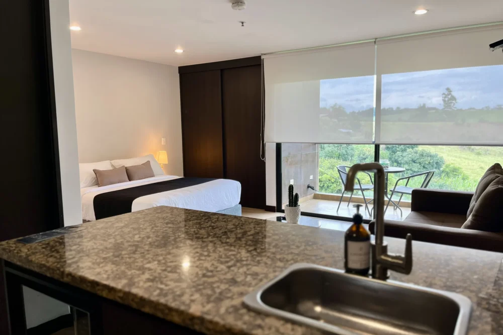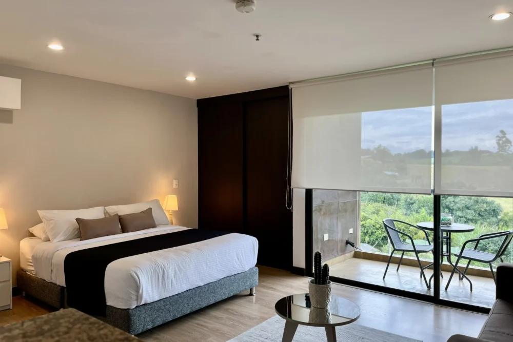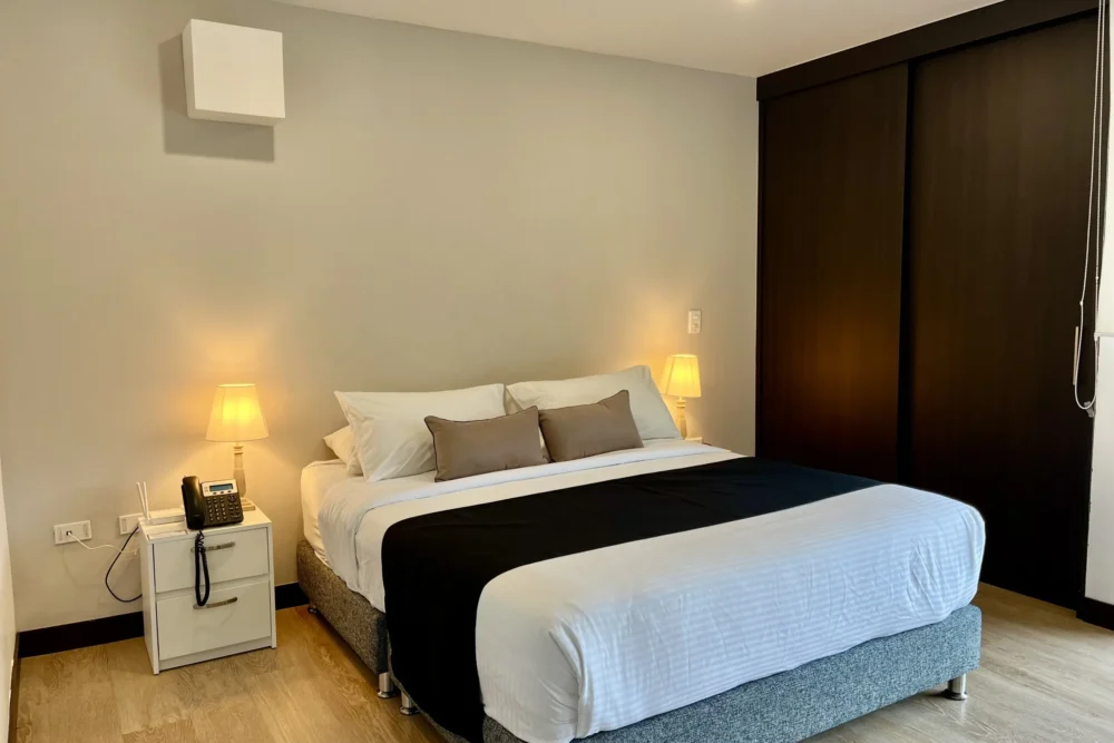 The Standard Suite is designed with a functional, high-precision layout, where the king-size bed ensures optimal rest and the spatial distribution maximizes efficiency and guest comfort. It can accommodate two guests. Its understated aesthetic, enhanced by elegant finishes and high-speed Wi-Fi connectivity, makes it the ideal choice for executives who value performance and exclusivity in the same environment.